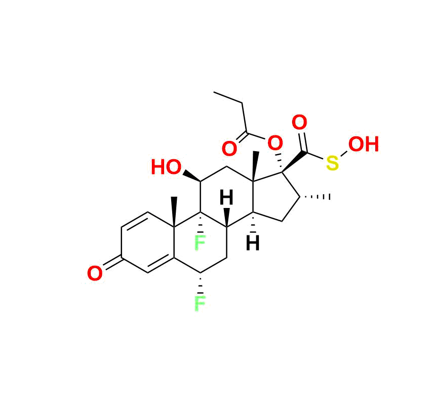 | Chemical name | (6S, 8S, 9R, 10S, 11S, 13S, 14S, 16R, 17R)-6, 9-difluoro-11-hydroxy-10, 13, 16-trimethyl-3-oxo-17-(propionyloxy)-6, 7, 8, 9, 10, 11, 12, 13, 14, 15, 16, 17-dodecahydro-3H-cyclopenta[a]phenanthrene-17-carbo(thioperoxoic )O-acid |
