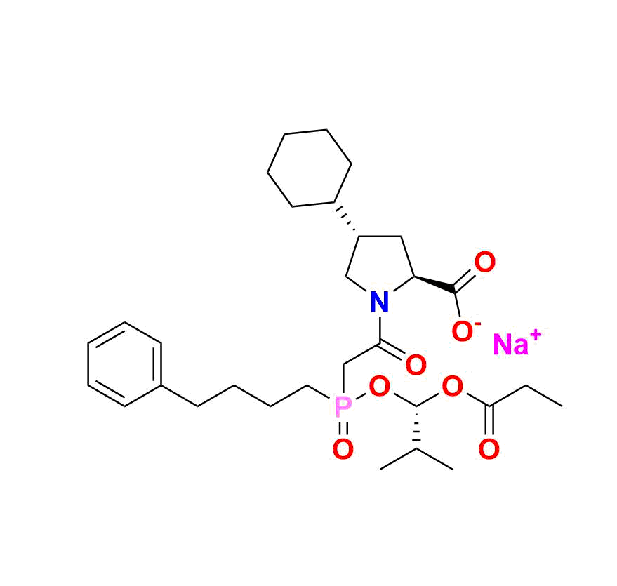 | Chemical name | sodium (2S, 4S)-4-cyclohexyl-1-(2-(((S)-2-methyl-1-(propionyloxy)propoxy)(4-phenylbutyl)phosphoryl)acetyl)pyrrolidine-2-carboxylate |