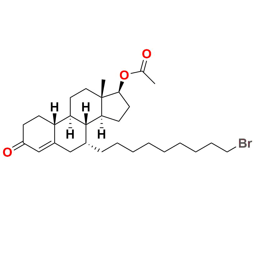 | Chemical Name: | (7R,8R,9S,10R,13S,14S,17S)-7-(9-bromononyl)-13-methyl-3-oxo-2,3,6,7,8,9,10,11,12,13,14,15,16,17-tetradecahydro-1H-cyclopenta[a]phenanthren-17-yl acetate |