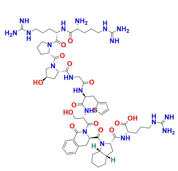 | Chemical name | ((2S, 3aS, 7aS)-1-((R)-2-(((S)-2-(2-((2S, 4R)-1-(D-arginyl-L-arginyl-L-prolyl)-4-hydroxypyrrolidine-2-carboxamido)acetamido)-3-(thiophen-2-yl)propanoyl)-L-seryl)-1-oxo-1, 2, 3, 4-tetrahydroisoquinoline-3-carbonyl)octahydro-1H-indole-2-carbonyl)-L-arginine |