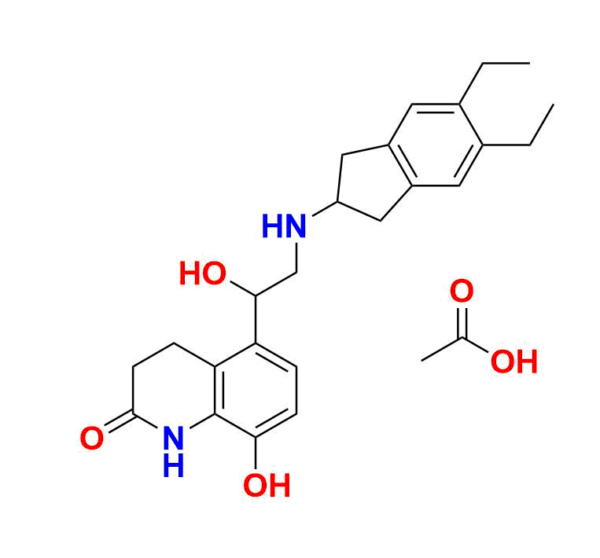 | Chemical name | 5-(2-((5, 6-diethyl-2, 3-dihydro-1H-inden-2-yl)amino)-1-hydroxyethyl)-8-hydroxy-3, 4-dihydroquinolin-2(1H)-one acetate salt |