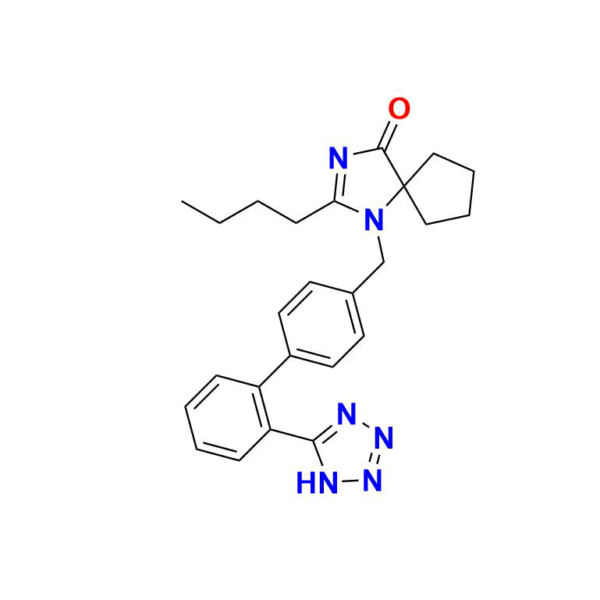| Chemical name | 1-((2'-(1H-tetrazol-5-yl)-[1, 1'-biphenyl]-4-yl)methyl)-2-butyl-1, 3-diazaspiro[4.4]non-2-en-4-one |