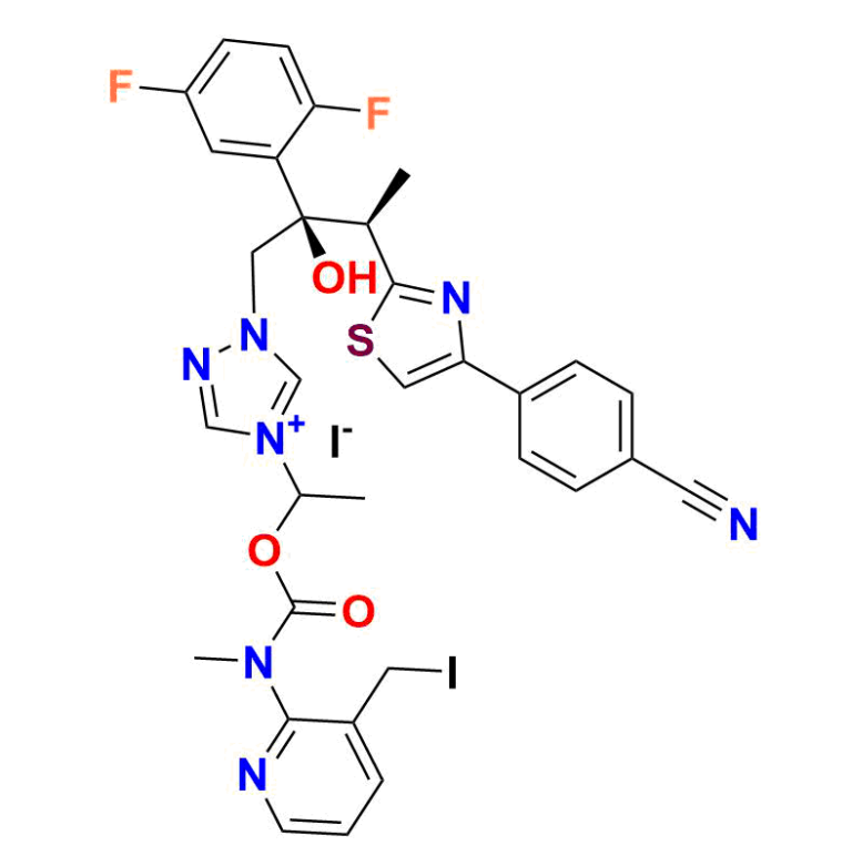 | Chemical name | 1-((2R, 3R)-3-(4-(4-cyanophenyl)thiazol-2-yl)-2-(2, 5-difluorophenyl)-2-hydroxybutyl)-4-(1-(((3-(iodomethyl)pyridin-2-yl)(methyl)carbamoyl)oxy)ethyl)-1H-1, 2, 4-triazol-4-ium iodide |