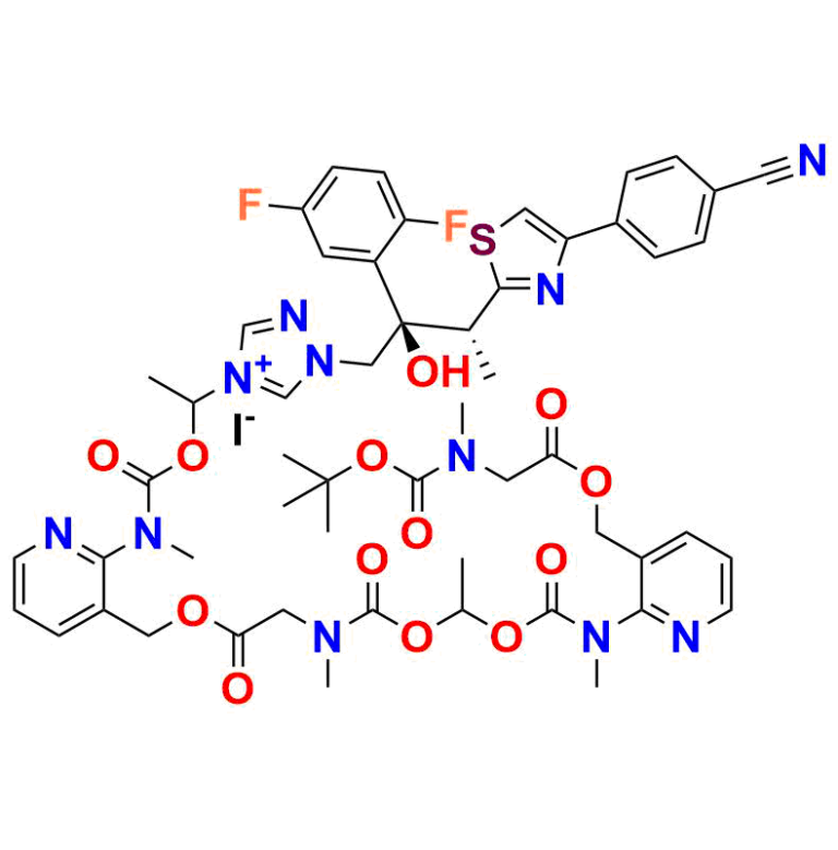 | Chemical name | 4-(1-(((3-(2-(3-(((N-(tert-butoxycarbonyl)-N-methylglycyl)oxy)methyl)pyridin-2-yl)-5, 8-dimethyl-3, 7, 10-trioxo-4, 6, 11-trioxa-2, 8-diazadodecan-12-yl)pyridin-2-yl)(methyl)carbamoyl)oxy)ethyl)-1-((2R, 3R)-3-(4-(4-cyanophenyl)thiazol-2-yl)-2-(2, 5-difluorophenyl)-2-hydroxybutyl)-1H-1, 2, 4-triazol-4-ium iodide |