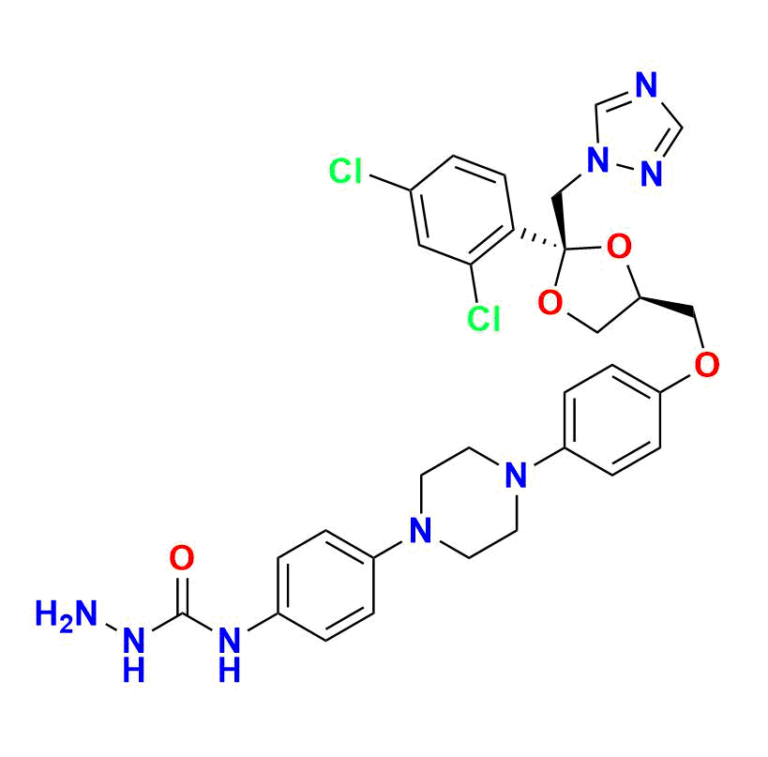 | Chemical name | N-(4-(4-(4-(((2R, 4S)-2-((1H-1, 2, 4-triazol-1-yl)methyl)-2-(2, 4-dichlorophenyl)-1, 3-dioxolan-4-yl)methoxy)phenyl)piperazin-1-yl)phenyl)hydrazinecarboxamide |