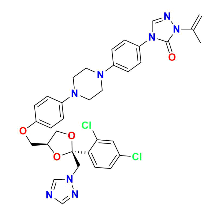 | Chemical name | 4-(4-(4-(4-(((2R, 4S)-2-((1H-1, 2, 4-triazol-1-yl)methyl)-2-(2, 4-dichlorophenyl)-1, 3-dioxolan-4-yl)methoxy)phenyl)piperazin-1-yl)phenyl)-2-(prop-1-en-2-yl)-2, 4-dihydro-3H-1, 2, 4-triazol-3-one |