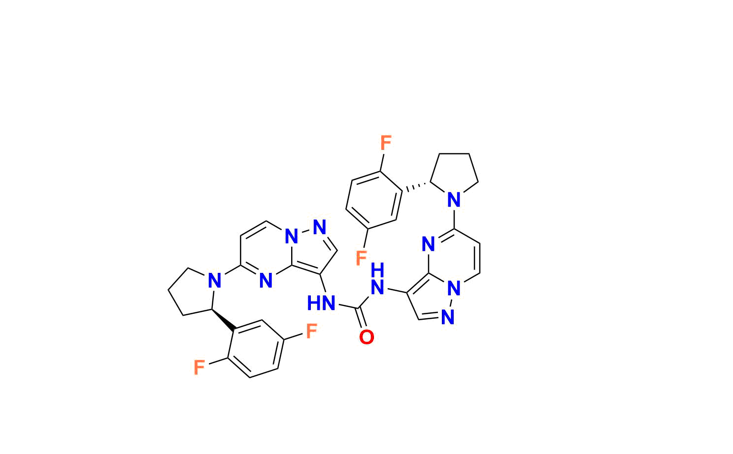 | Chemical name | 1-(5-((R)-2-(2, 5-difluorophenyl)pyrrolidin-1-yl)pyrazolo[1, 5-a]pyrimidin-3-yl)-3-(5-((S)-2-(2, 5-difluorophenyl)pyrrolidin-1-yl)pyrazolo[1, 5-a]pyrimidin-3-yl)urea |