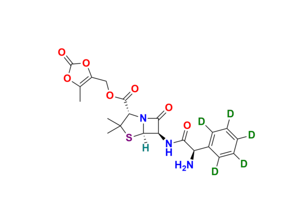 | Chemical name | (5-Methyl-2-oxo-1, 3-Dioxol-4-yl)methyl (2S, 5R, 6R)-6-((R)-2-Amino-2-(phenyl-d5)Acetamido)-3, 3-dimethyl-7-oxo-4-thia-1-azabicyclo[3.2.0]heptane-2-Carboxylate |