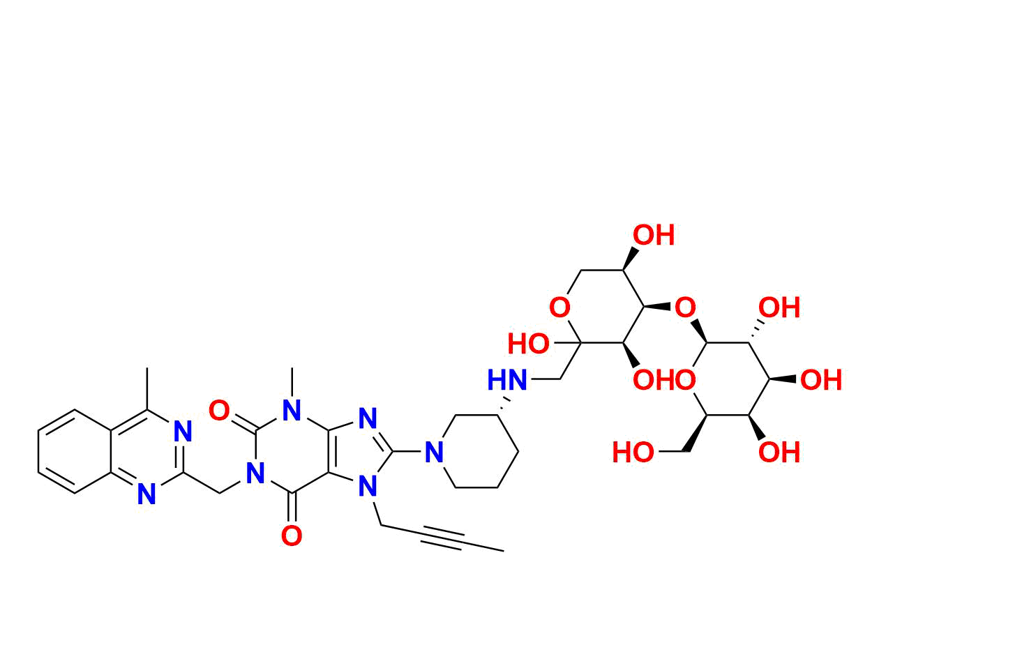 | Chemical name | 7-(But-2-yn-1-yl)-3-methyl-1-((4-methylquinazolin-2-yl)methyl)-8-((3R)-3-((((3R, 4R, 5R)-2, 3, 5-trihydroxy-4-(((2S, 3R, 4S, 5R, 6R)-3, 4, 5-trihydroxy-6-(hydroxymethyl)tetrahydro-2H-pyran-2-yl)oxy)tetrahydro-2H-pyran-2-yl)methyl)amino)piperidin-1-yl)-3, 7-dihydro-1H-purine-2, 6-dione |