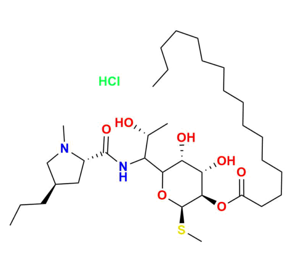 | Chemical name | (2R,3R,4S,5R)-4,5-dihydroxy-6-((2R)-2-hydroxy-1-((2S,4R)-1-methyl-4-propylpyrrolidine-2-carboxamido)propyl)-2-(methylthio)tetrahydro-2H-pyran-3-yl palmitate monohydrochloride |