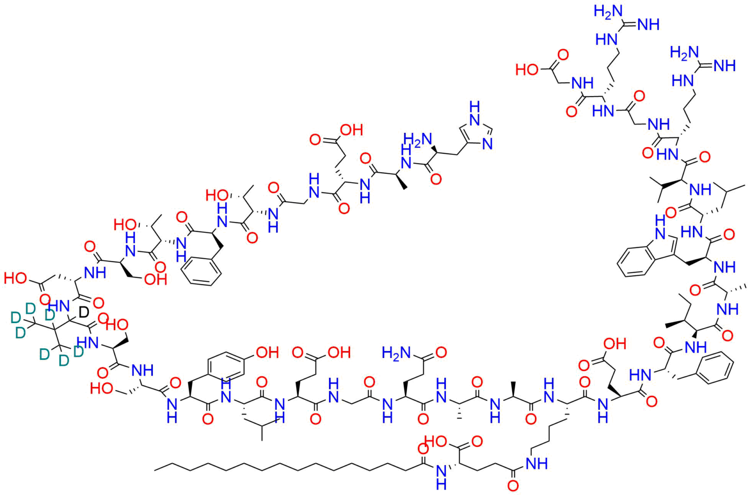 | Smiles: | O=C(O)CNC([C@H](CCCNC(N)=N)NC(CNC([C@H](CCCNC(N)=N)NC([C@H](C(C)C)NC([C@H](CC(C)C)NC([C@H](CC1=CNC2=C1C=CC=C2)NC([C@H](C)NC([C@H]([C@@H](C)CC)NC([C@H](CC3=CC=CC=C3)NC([C@H](CCC(O)=O)NC([C@H](CCCCNC(CC[C@@H](C(O)=O)NC(CCCCCCCCCCCCCCC)=O)=O)NC([C@H](C)NC([C@H](C)NC([C@H](CCC(N)=O)NC(CNC([C@H](CCC(O)=O)NC([C@H](CC(C)C)NC([C@H](CC4=CC=C(O)C=C4)NC([C@H](CO)NC([C@H](CO)NC(C(C(C([2H])([2H])[2H])([2H])C([2H])([2H])[2H])([2H])NC([C@H](CC(O)=O)NC([C@H](CO)NC([C@H]([C@H](O)C)NC([C@H](CC5=CC=CC=C5)NC([C@H]([C@H](O)C)NC(CNC([C@H](CCC(O)=O)NC([C@H](C)NC([C@H](CC6=CNC=N6)N)=O)=O)=O)=O)=O)=O)=O)=O)=O)=O)=O)=O)=O)=O)=O)=O)=O)=O)=O)=O)=O)=O)=O)=O)=O)=O)=O)=O)=O)=O |