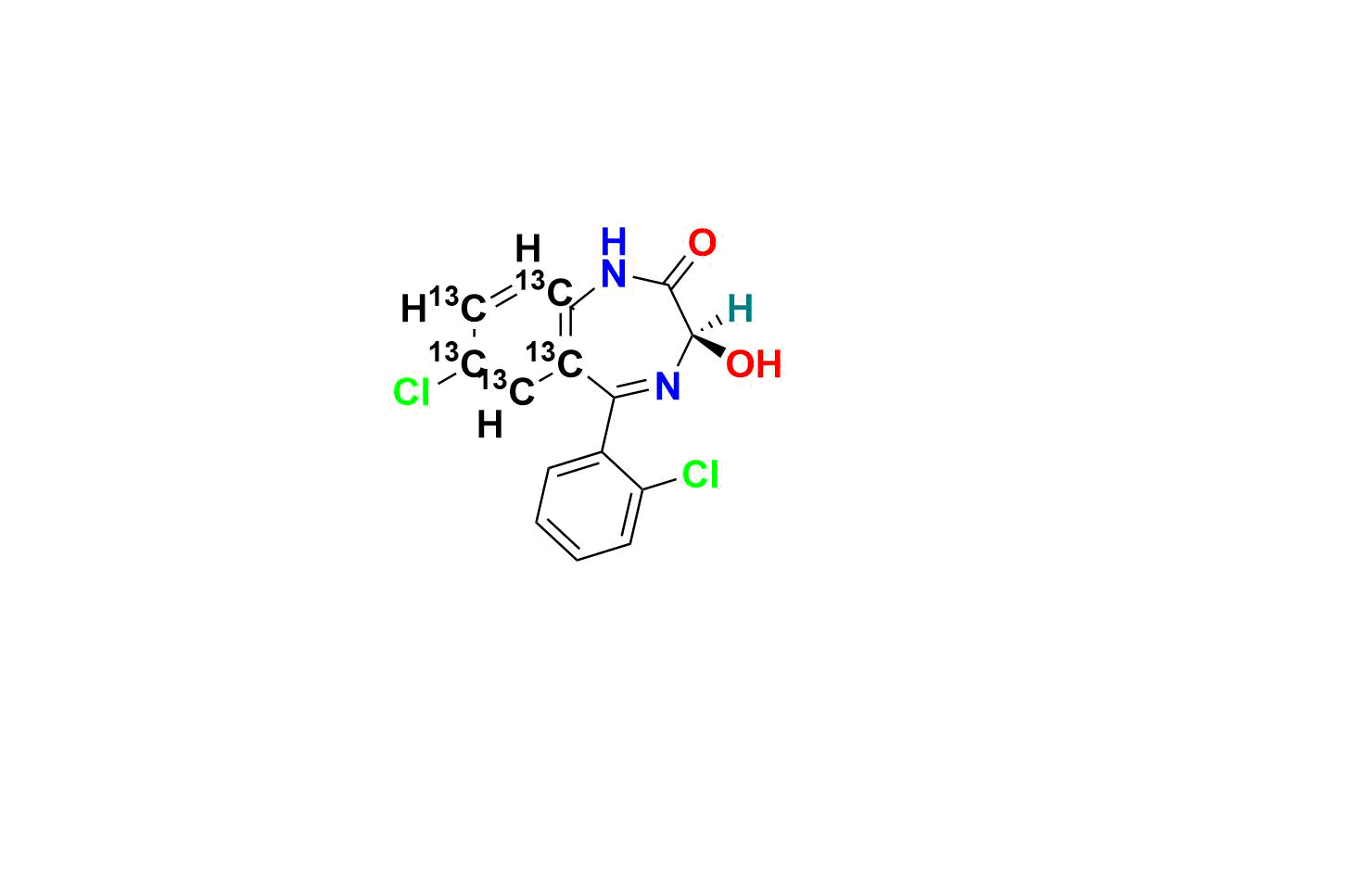 | Chemical name | (R)-7-chloro-5-(2-chlorophenyl)-3-hydroxy-1, 3-dihydro-2H-benzo[e][1, 4]diazepin-2-one-5a, 6, 7, 8, 9-13C5 |