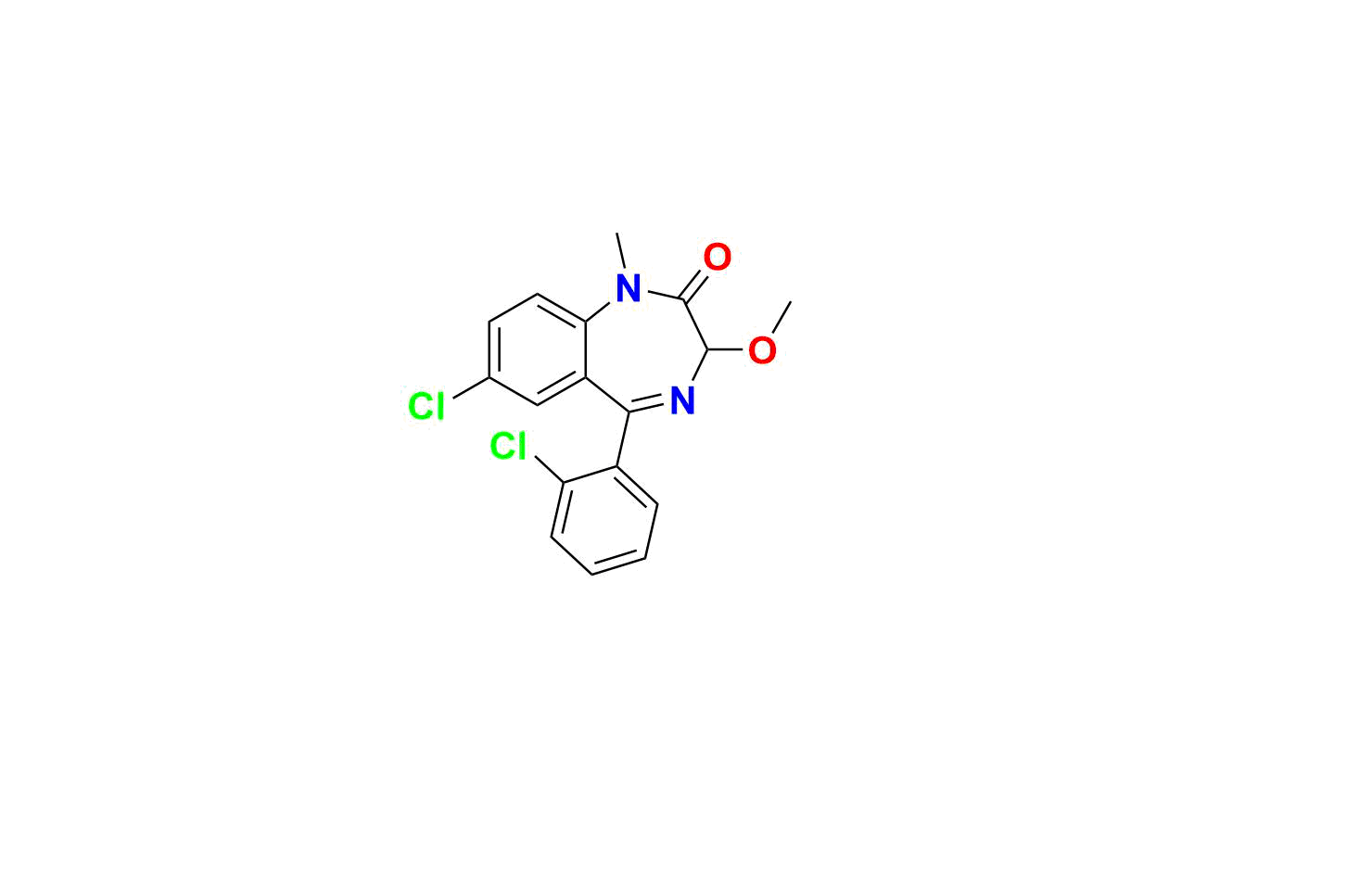 | Chemical name | 7-chloro-5-(2-chlorophenyl)-3-methoxy-1-methyl-1, 3-dihydro-2H-benzo[e][1, 4]diazepin-2-one |