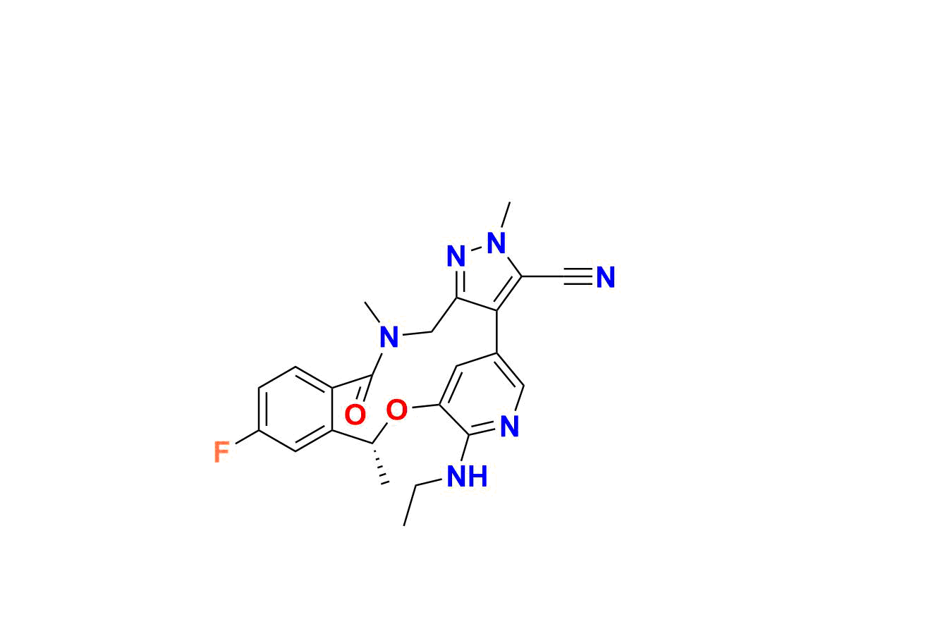 | Chemical name | (R)-26-(ethylamino)-55-fluoro-11, 4, 7-trimethyl-6-oxo-11H-3-oxa-7-aza-2(3, 5)-pyridina-1(4, 3)-pyrazola-5(1, 2)-benzenacyclooctaphane-15-carbonitrile |