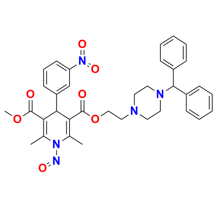 | Chemical Name | 3-(2-(4-benzhydrylpiperazin-1-yl)ethyl) 5-methyl 2,6-dimethyl-4-(3-nitrophenyl)-1-nitroso-1,4-dihydropyridine-3,5-dicarboxylate |