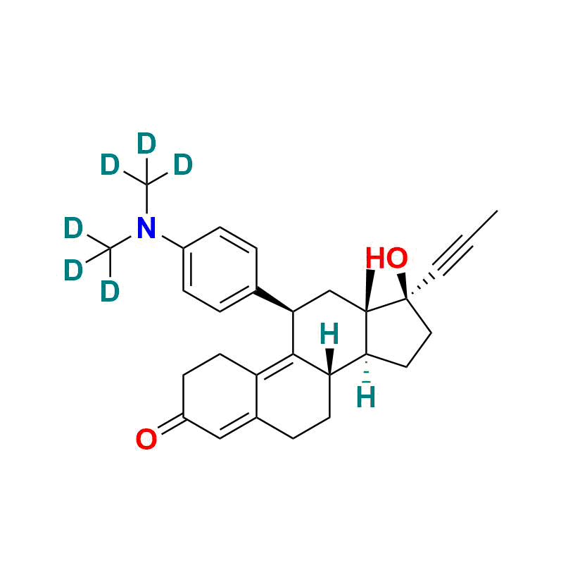 Mifepristone D6 is a high-quality reference standard supplied with comprehensive characterization data, ensuring compliance with regulatory guidelines. This product is essential for analytical method development, method validation (AMV), quality control (QC) applications, and plays a crucial role in Abbreviated New Drug Applications (ANDA).