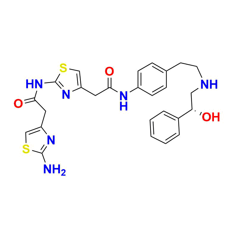 | Chemical name | (R)-2-(2-aminothiazol-4-yl)-N-(4-(2-((4-(2-((2-hydroxy-2-phenylethyl)amino)ethyl)phenyl)amino)-2-oxoethyl)thiazol-2-yl)acetamide |