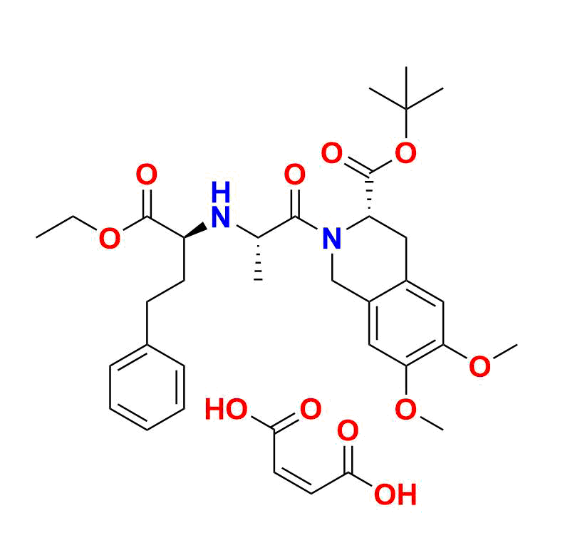 | Chemical name | tert-butyl (S)-2-(((S)-1-ethoxy-1-oxo-4-phenylbutan-2-yl)-L-alanyl)-6, 7-dimethoxy-1, 2, 3, 4-tetrahydroisoquinoline-3-carboxylate maleate |