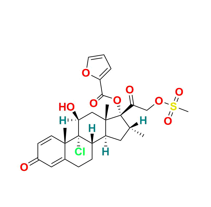 | Chemical name | (8S, 9R, 10S, 11S, 13S, 14S, 16R, 17R)-9-chloro-11-hydroxy-10, 13, 16-trimethyl-17-(2-((methylsulfonyl)oxy)acetyl)-3-oxo-6, 7, 8, 9, 10, 11, 12, 13, 14, 15, 16, 17-dodecahydro-3H-cyclopenta[a]phenanthren-17-yl furan-2-carboxylate |