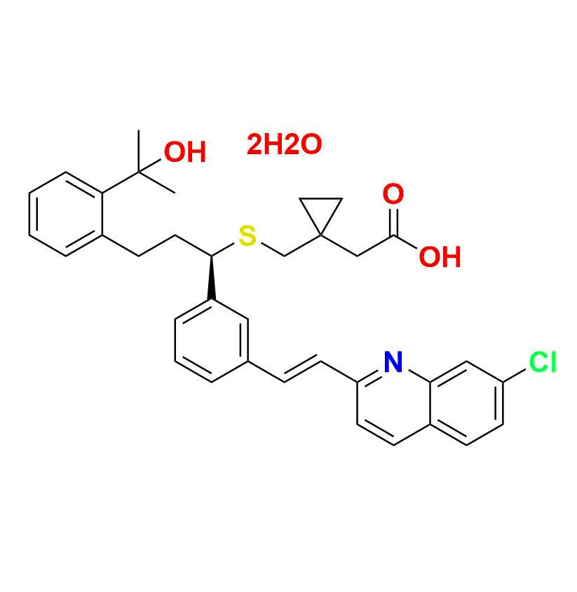 | Chemical name | (R, E)-2-(1-(((1-(3-(2-(7-chloroquinolin-2-yl)vinyl)phenyl)-3-(2-(2-hydroxypropan-2-yl)phenyl)propyl)thio)methyl)cyclopropyl)acetic acid dihydrate |