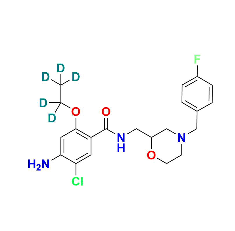 | Chemical name | 4-amino-5-chloro-2-(ethoxy-d5)-N-((4-(4-fluorobenzyl)morpholin-2-yl)methyl)benzamide |