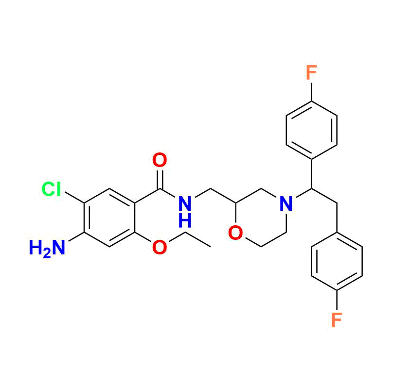 | Chemical name | 4-amino-N-((4-(1, 2-bis(4-fluorophenyl)ethyl)morpholin-2-yl)methyl)-5-chloro-2-ethoxybenzamide |