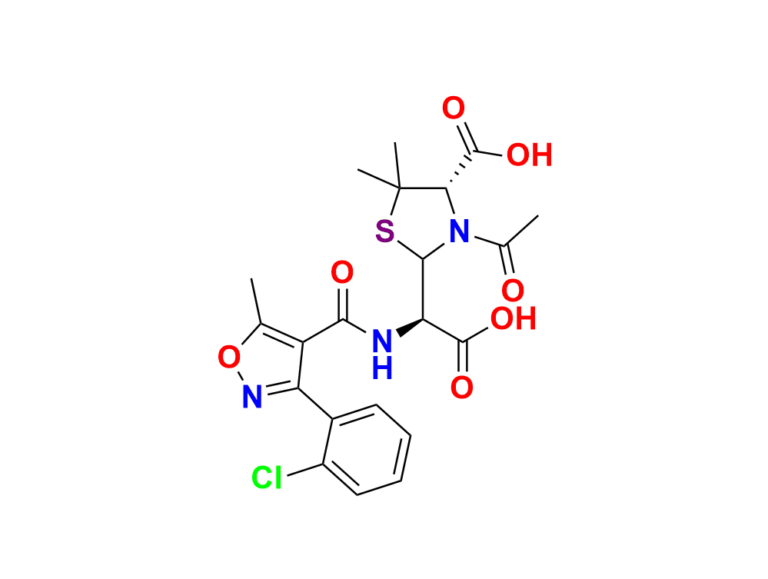 | Chemical name | (4S)-3-Acetyl-2-((R)-carboxy(3-(2-chlorophenyl)-5-methylisoxazole-4-carboxamido)methyl)-5, 5-dimethylthiazolidine-4-carboxylic acid |