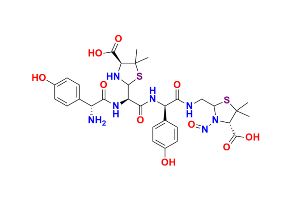 | Chemical name | (4S)-2-(((2R)-2-((2R)-2-((R)-2-amino-2-(4-hydroxyphenyl)acetamido)-2-((4S)-4-carboxy-5, 5-dimethylthiazolidin-2-yl)acetamido)-2-(4-hydroxyphenyl)acetamido)methyl)-5, 5-dimethyl-3-nitrosothiazolidine-4-carboxylic acid |