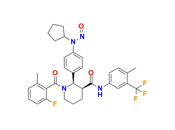 | Chemical name | (2R, 3S)-2-(4-(Cyclopentyl(nitroso)amino)phenyl)-1-(2-fluoro-6-methylbenzoyl)-N-(4-methyl-3-(trifluoromethyl)phenyl)piperidine-3-carboxamide |
