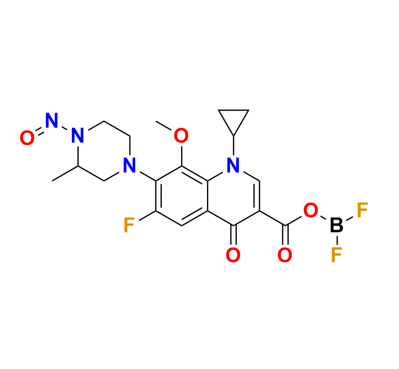 | Chemical Name | 1-cyclopropyl-3-(((difluoroboryl)oxy)carbonyl)-6-fluoro-8-methoxy-7-(3-methyl-4-nitrosopiperazin-1-yl)quinolin-4(1H)-one |