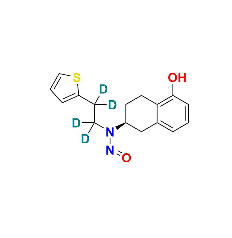 N-Nitroso Rotigotine EP Impurity C D4 can be used as a reference standard, with possible traceability to pharmacopeial standards such as USP or EP, based on feasibility. AquigenBio products are strictly for analytical purposes and is not intended for human use.