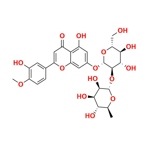 | Chemical name | 7-(((2S, 3R, 4S, 5S, 6R)-4, 5-dihydroxy-6-(hydroxymethyl)-3-(((2S, 3R, 4R, 5R, 6S)-3, 4, 5-trihydroxy-6-methyltetrahydro-2H-pyran-2-yl)oxy)tetrahydro-2H-pyran-2-yl)oxy)-5-hydroxy-2-(3-hydroxy-4-methoxyphenyl)-4H-chromen-4-one |