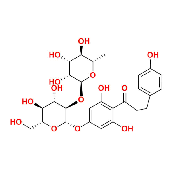 | Chemical name | 1-(4-(((2S, 3R, 4S, 5S, 6R)-4, 5-dihydroxy-6-(hydroxymethyl)-3-(((2S, 3R, 4R, 5R, 6S)-3, 4, 5-trihydroxy-6-methyltetrahydro-2H-pyran-2-yl)oxy)tetrahydro-2H-pyran-2-yl)oxy)-2, 6-dihydroxyphenyl)-3-(4-hydroxyphenyl)propan-1-one |