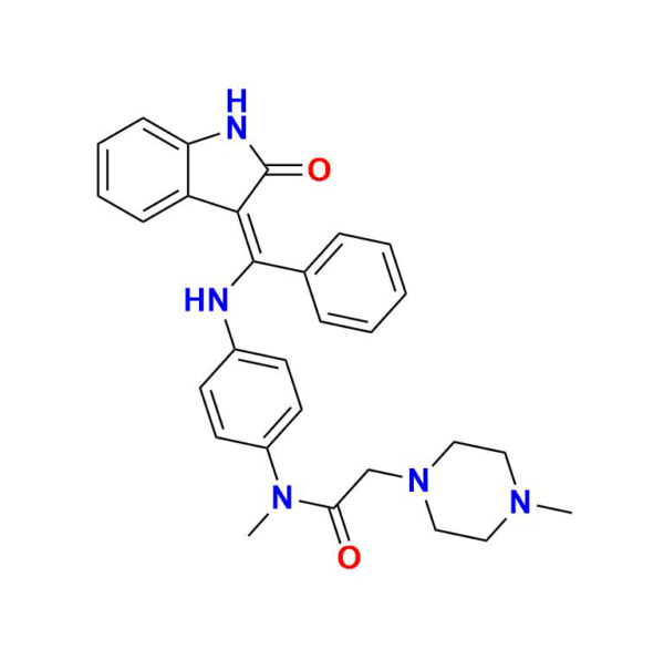 | Chemical name | (E)-N-methyl-2-(4-methylpiperazin-1-yl)-N-(4-(((2-oxoindolin-3-ylidene)(phenyl)methyl)amino)phenyl)acetamide |