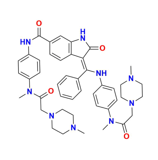 | Chemical name | (Z)-N-(4-(N-methyl-2-(4-methylpiperazin-1-yl)acetamido)phenyl)-3-(((4-(N-methyl-2-(4-methylpiperazin-1-yl)acetamido)phenyl)amino)(phenyl)methylene)-2-oxoindoline-6-carboxamide |