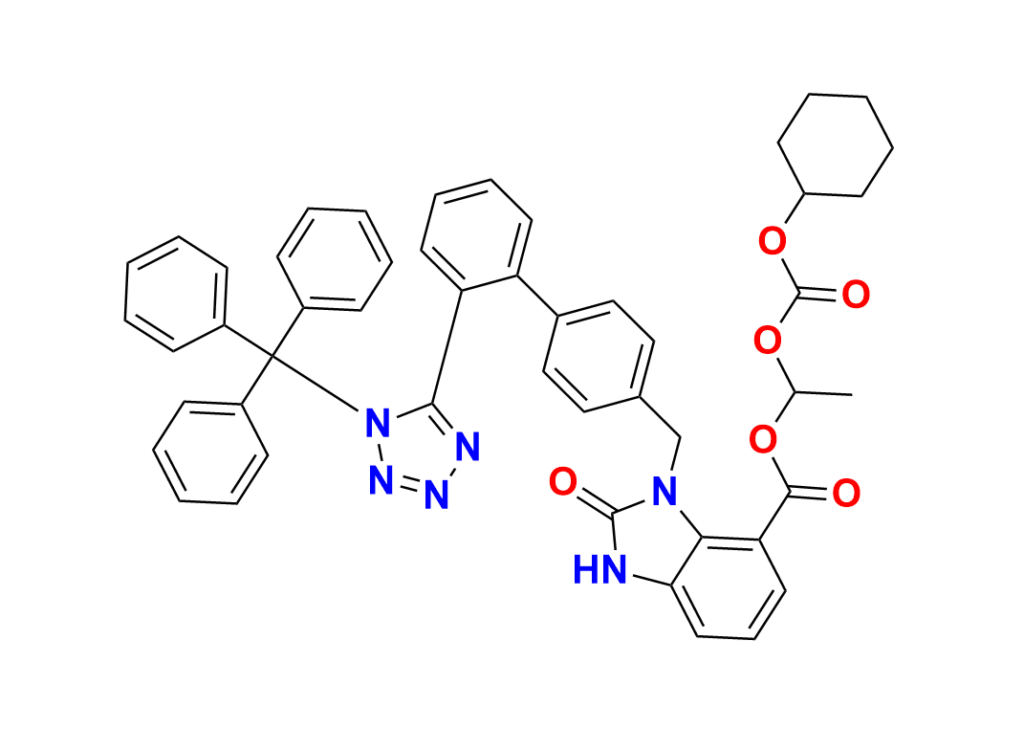 | Chemical name | 1-(((Cyclohexyloxy)carbonyl)oxy)ethyl 2-oxo-3-((2'-(1-trityl-1H-tetrazol-5-yl)-[1, 1'-biphenyl]-4-yl)methyl)-2, 3-dihydro-1H-benzo[d]imidazole-4-carboxylate |