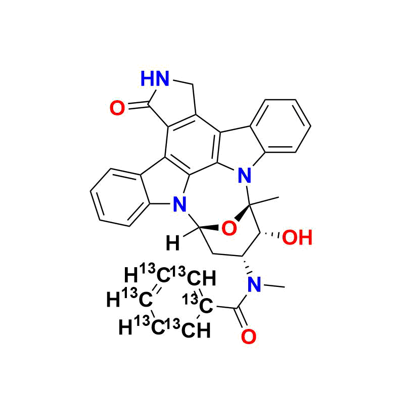 O-Desmethyl Midostaurin 13C6 can be used as a reference standard, with possible traceability to pharmacopeial standards such as USP or EP, based on feasibility. AquigenBio products are strictly for analytical purposes and is not intended for human use.