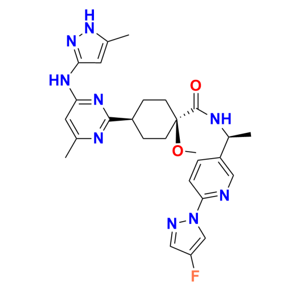 | Chemical Name | (1s,4R)-N-((S)-1-(6-(4-fluoro-1H-pyrazol-1-yl)pyridin-3-yl)ethyl)-1-methoxy-4-(4-methyl-6-((5-methyl-1H-pyrazol-3-yl)amino)pyrimidin-2-yl)cyclohexanecarboxamide |