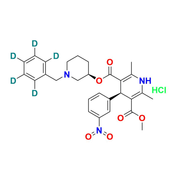 | Chemical name | 3-methyl 5-((R)-1-((phenyl-d5)methyl)piperidin-3-yl) (R)-2, 6-dimethyl-4-(3-nitrophenyl)-1, 4-dihydropyridine-3, 5-dicarboxylate hydrochloride |