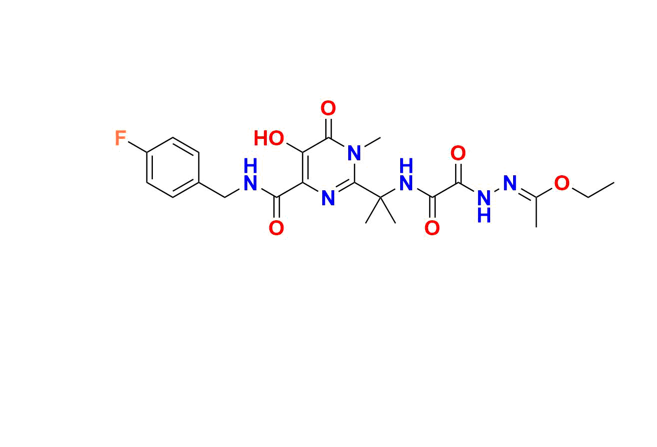 | Chemical name | ethyl (E)-N-(2-((2-(4-((4-fluorobenzyl)carbamoyl)-5-hydroxy-1-methyl-6-oxo-1, 6-dihydropyrimidin-2-yl)propan-2-yl)amino)-2-oxoacetyl)acetohydrazonate |