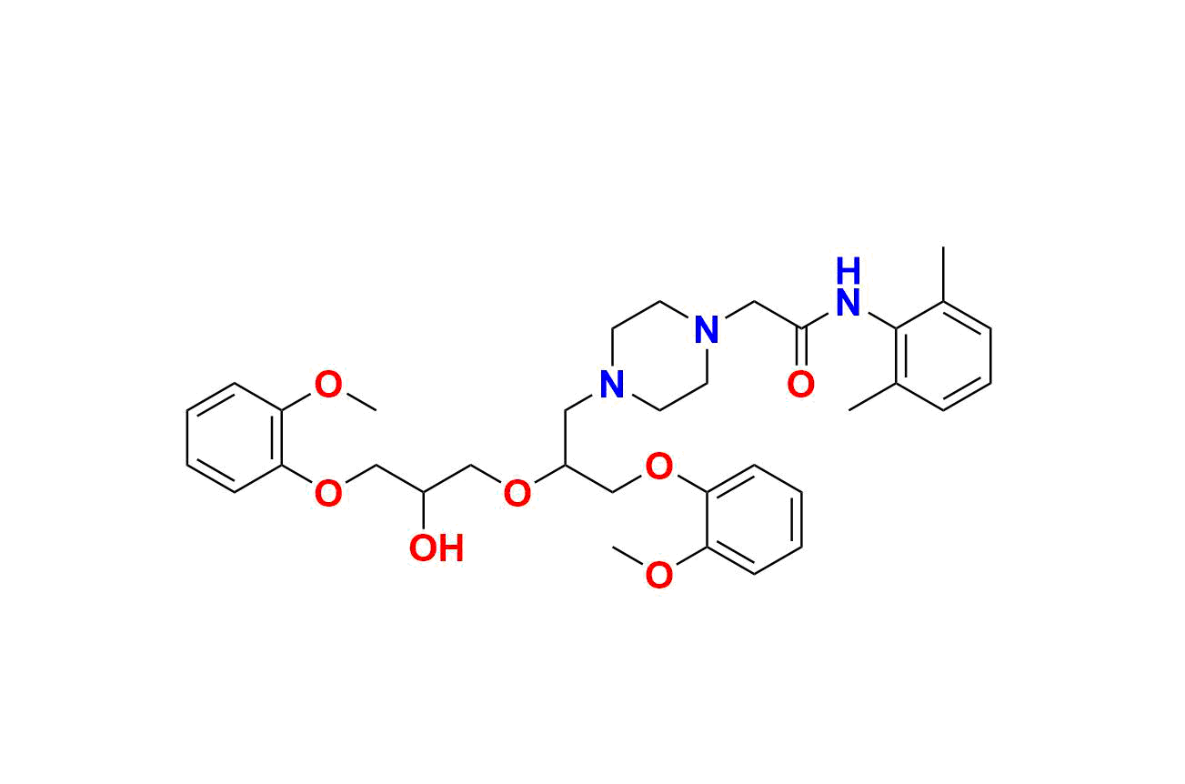 | Chemical name | N-(2, 6-dimethylphenyl)-2-(4-(2-(2-hydroxy-3-(2-methoxyphenoxy)propoxy)-3-(2-methoxyphenoxy)propyl)piperazin-1-yl)acetamide |