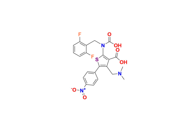 | Chemical name | 2-(carboxy(2, 6-difluorobenzyl)amino)-4-((dimethylamino)methyl)-5-(4-nitrophenyl)thiophene-3-carboxylic acid |