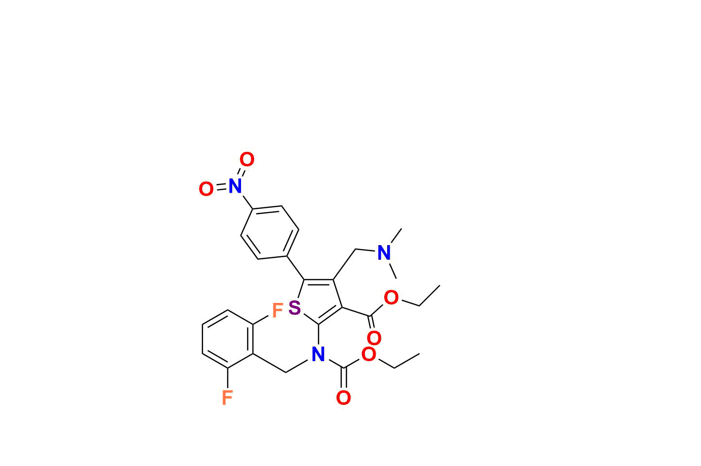 | Chemical name | ethyl 2-((2, 6-difluorobenzyl)(ethoxycarbonyl)amino)-4-((dimethylamino)methyl)-5-(4-nitrophenyl)thiophene-3-carboxylate |