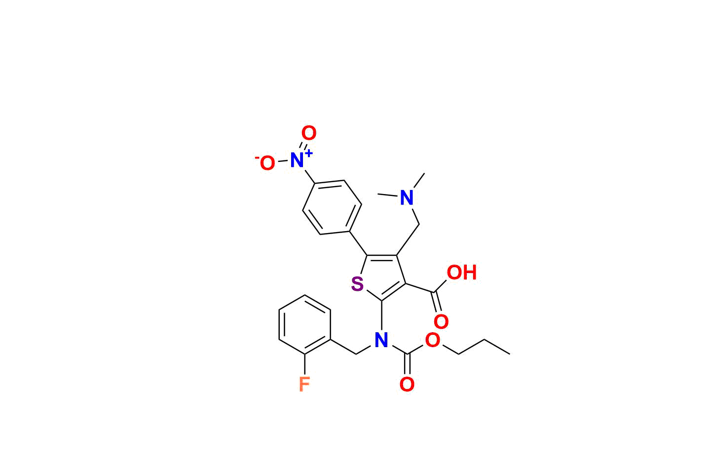 | Chemical name | 4-((dimethylamino)methyl)-2-((2-fluorobenzyl)(propoxycarbonyl)amino)-5-(4-nitrophenyl)thiophene-3-carboxylic acid |
