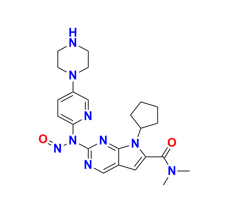 | Chemical Name | 7-cyclopentyl-N,N-dimethyl-2-(nitroso(5-(piperazin-1-yl)pyridin-2-yl)amino)-7H-pyrrolo[2,3-d]pyrimidine-6-carboxamide |