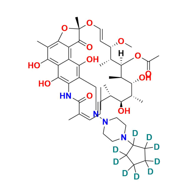 Rifapentine D9 is a high-quality reference standard supplied with comprehensive characterization data, ensuring compliance with regulatory guidelines. This product is essential for analytical method development, method validation (AMV), quality control (QC) applications, and plays a crucial role in Abbreviated New Drug Applications (ANDA).