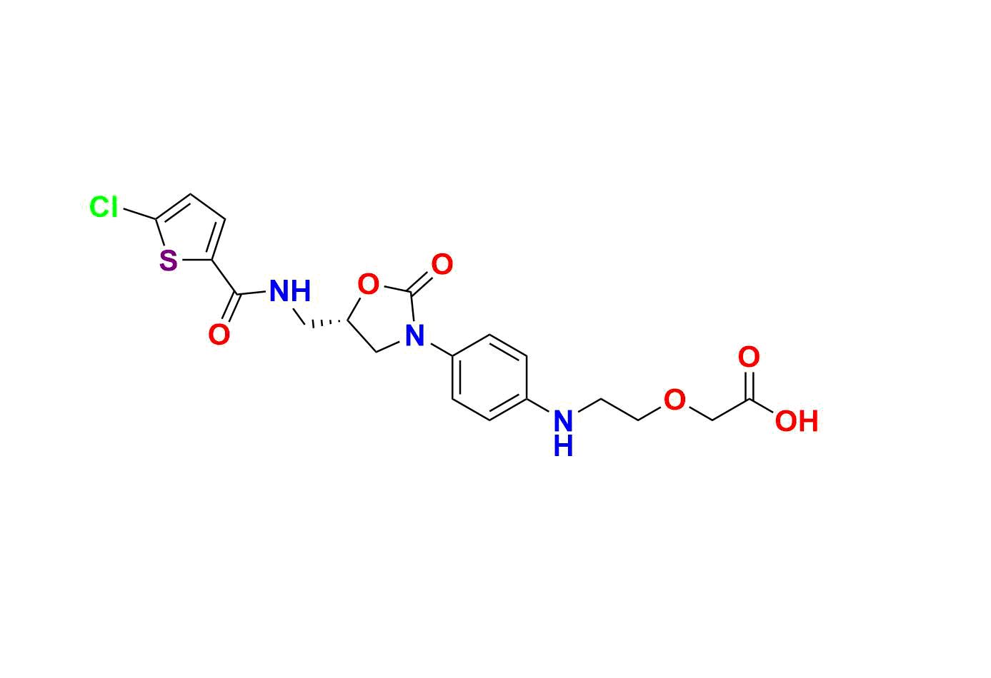 | Chemical name | (S)-2-(2-((4-(5-((5-chlorothiophene-2-carboxamido)methyl)-2-oxooxazolidin-3-yl)phenyl)amino)ethoxy)acetic acid |