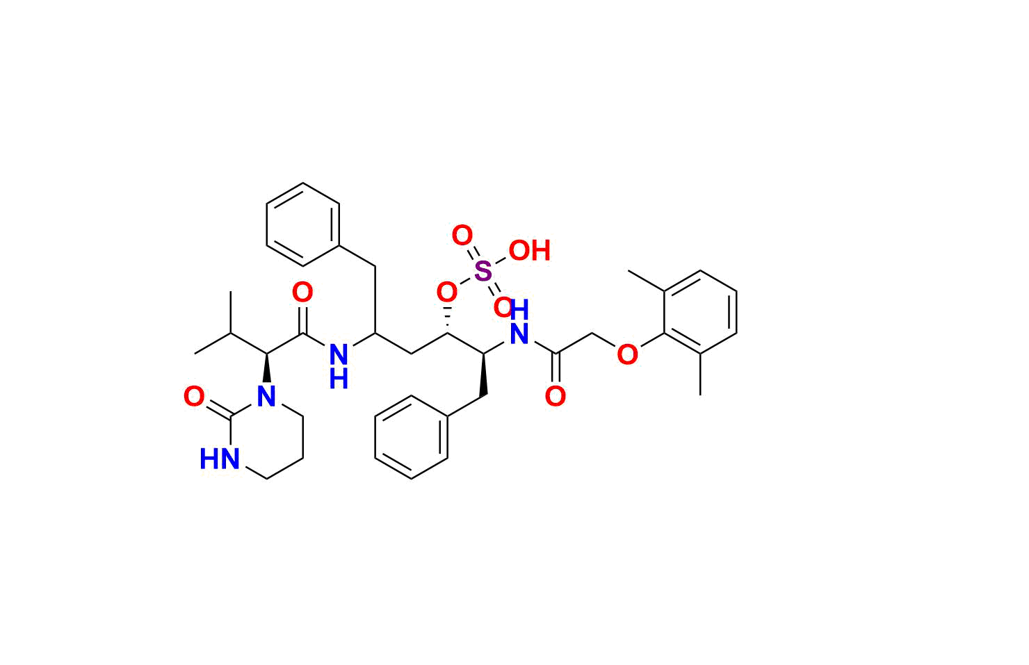 | Chemical name | (2S, 3S)-2-(2-(2, 6-dimethylphenoxy)acetamido)-5-((S)-3-methyl-2-(2-oxotetrahydropyrimidin-1(2H)-yl)butanamido)-1, 6-diphenylhexan-3-yl hydrogen sulfate |