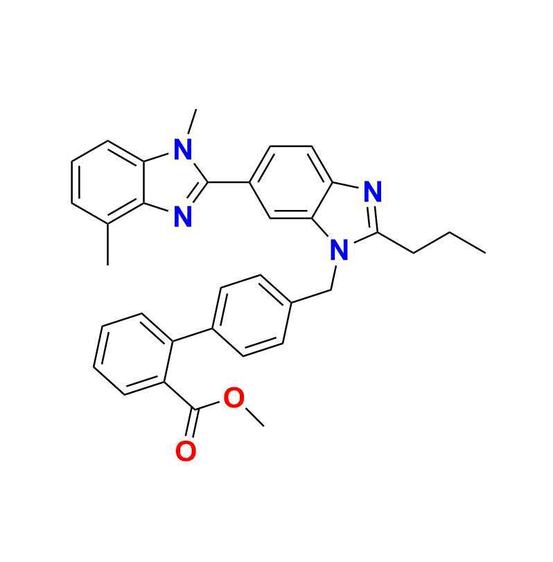 | Chemical name | methyl 4'-((1, 4-dimethyl-2'-propyl-1H, 3'H-[2, 5'-bibenzo[d]imidazol]-3'-yl)methyl)-[1, 1'-biphenyl]-2-carboxylate |