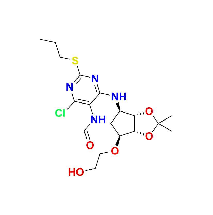 | Chemical name | N-(4-chloro-6-(((3aS, 4R, 6S, 6aR)-6-(2-hydroxyethoxy)-2, 2-dimethyltetrahydro-4H-cyclopenta[d][1, 3]dioxol-4-yl)amino)-2-(propylthio)pyrimidin-5-yl)formamide |